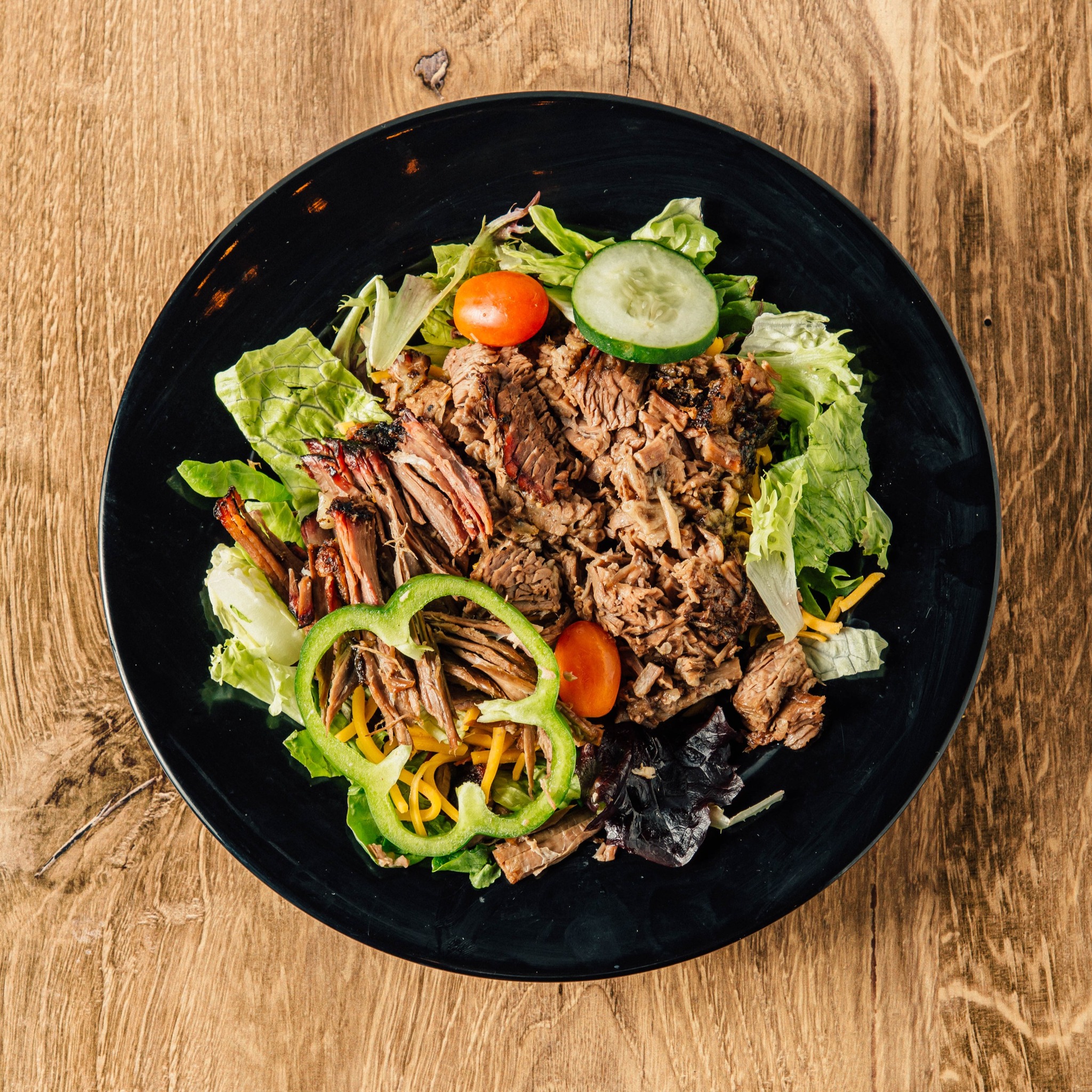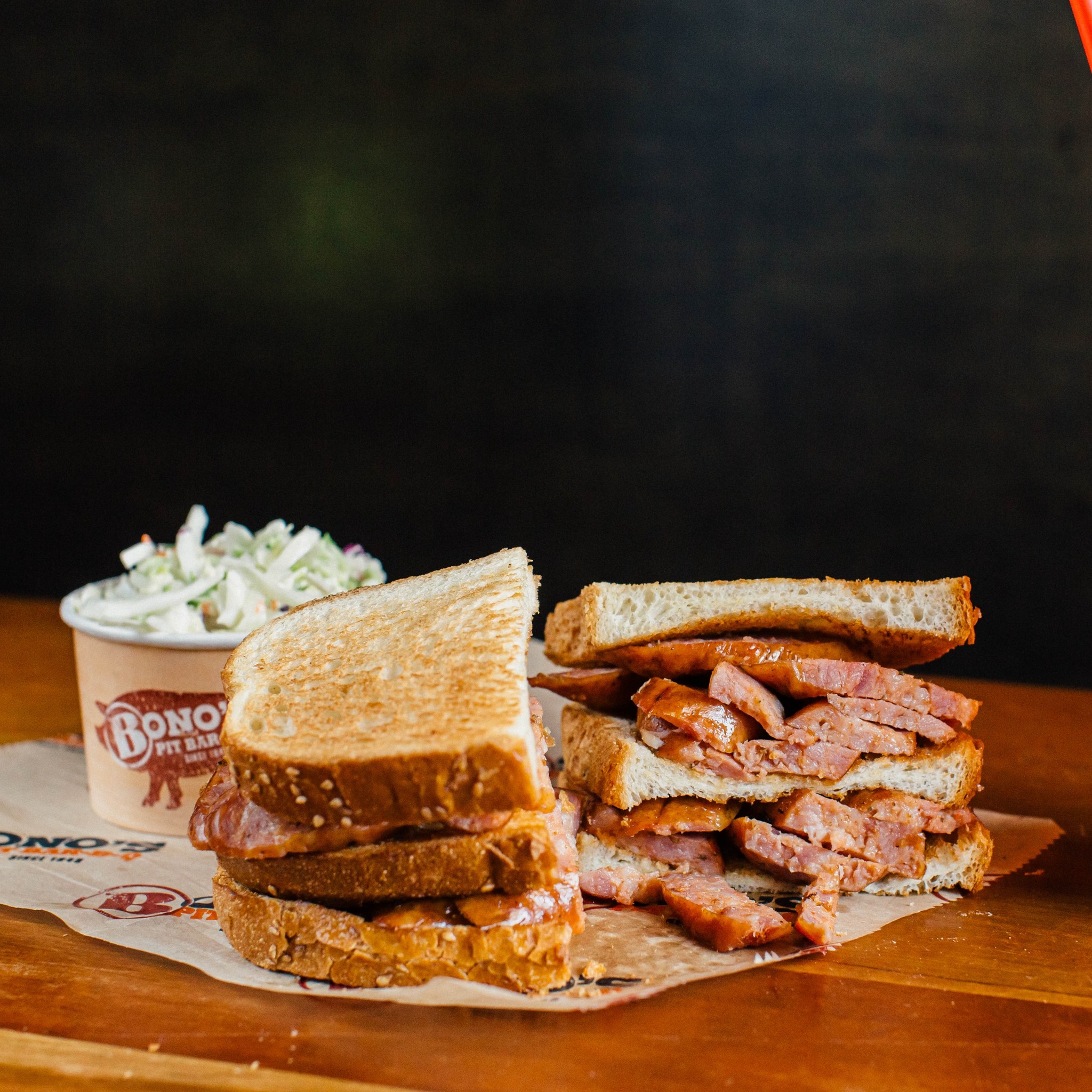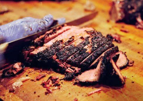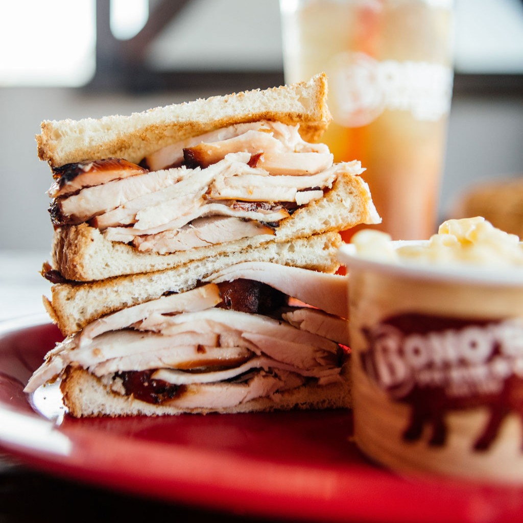 Brisket plus two Meats with your choice of 3 Traditional Sides, Bread, Beverages, Paper Products, Disposable Serving Utensils and BBQ Sauce