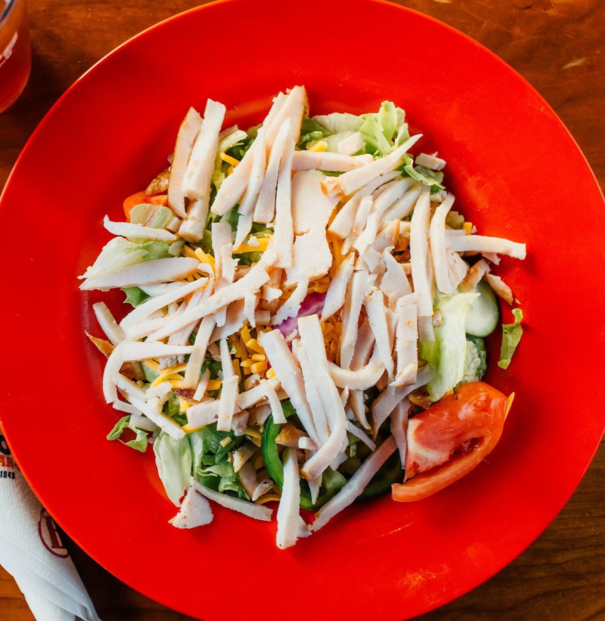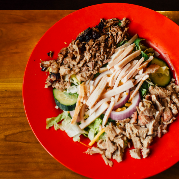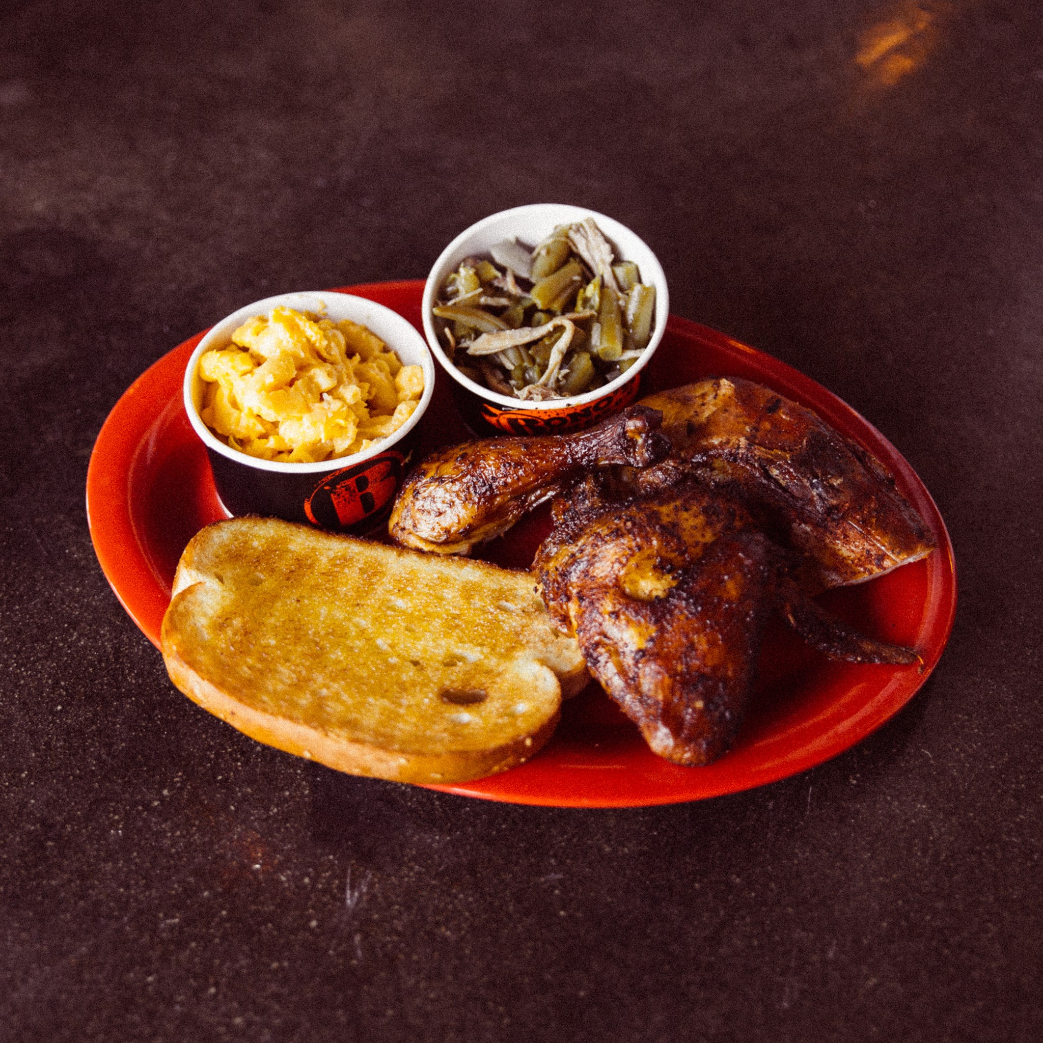 One lb. of meat, 1 whole chicken, 3 family sides, 6 garlic toast