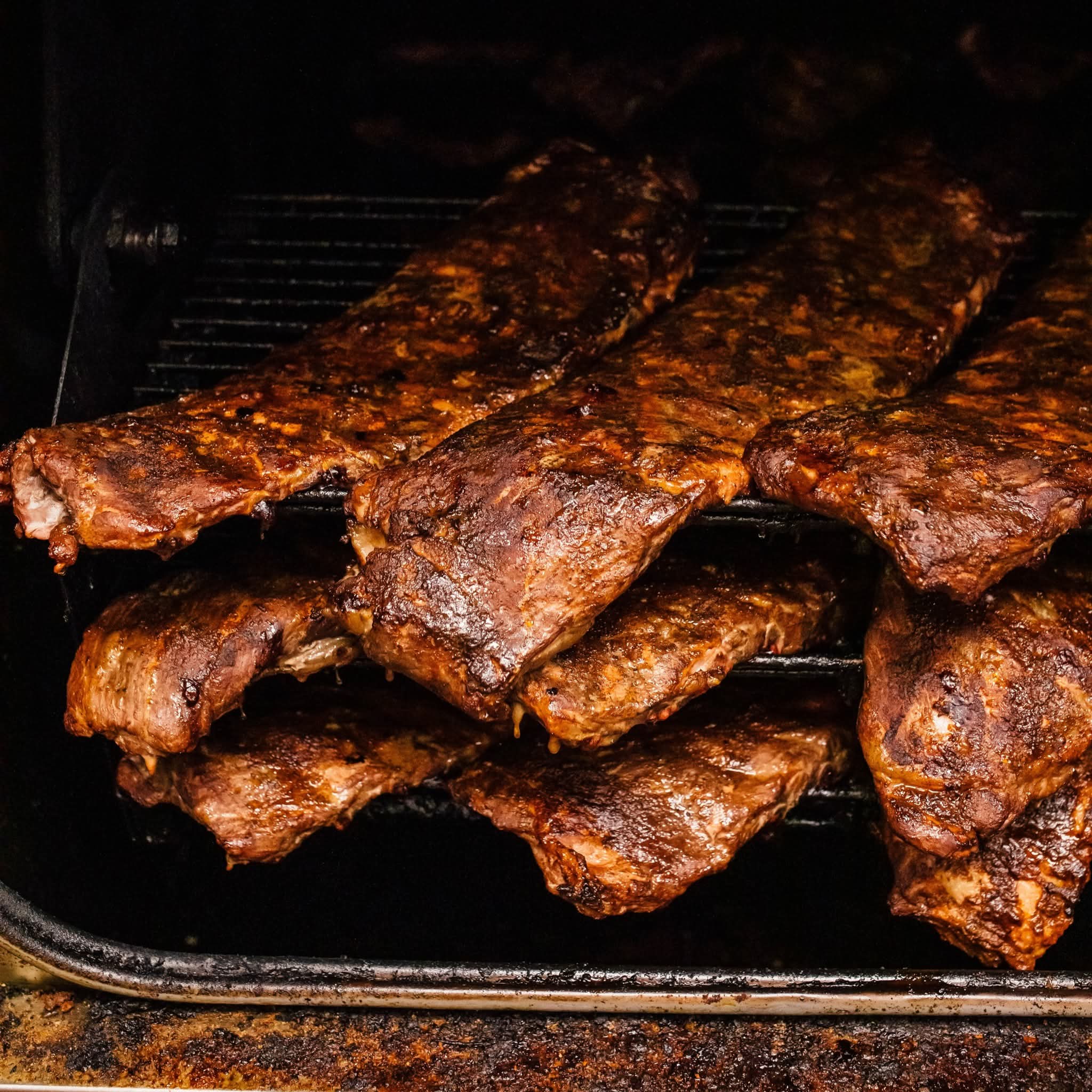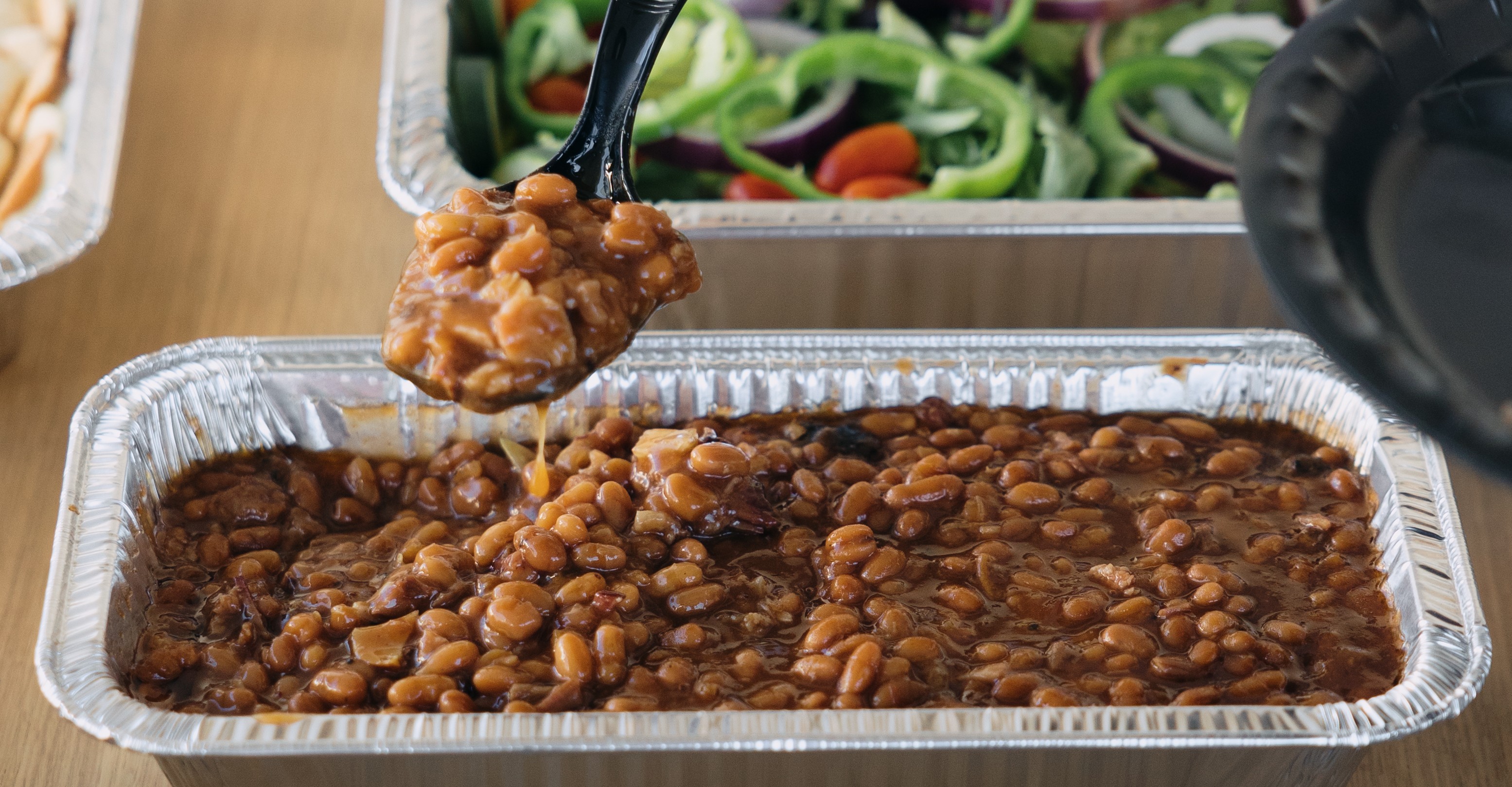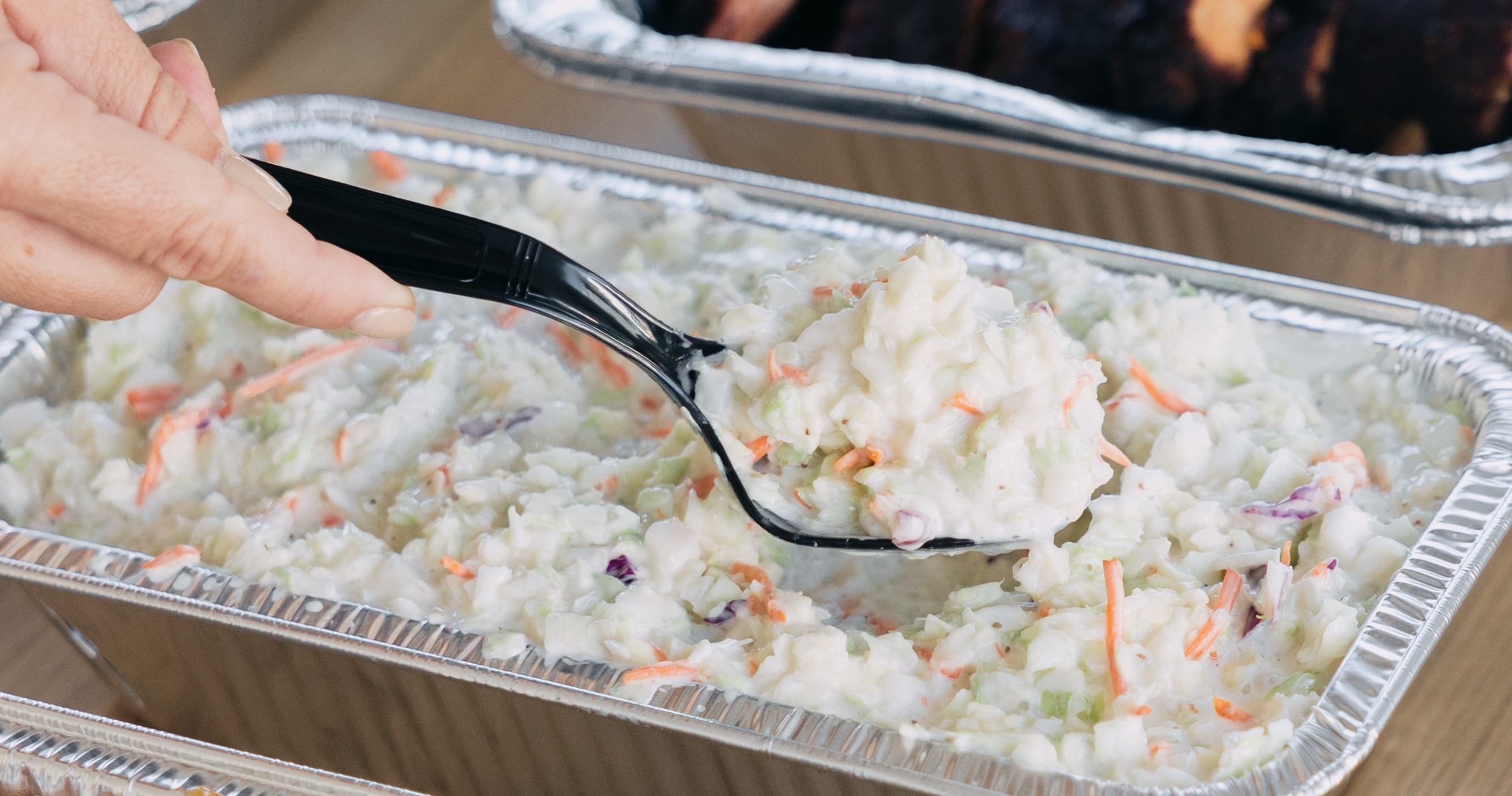 Ribs plus two Meats with your choice of 3 Traditional Sides, Bread, Beverages, Paper Products, Disposable Serving Utensils and BBQ Sauce