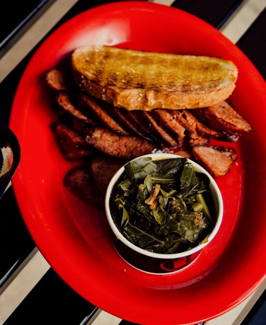 Two lbs of meat, 1 whole chicken, 4 family sides, 8 garlic toast