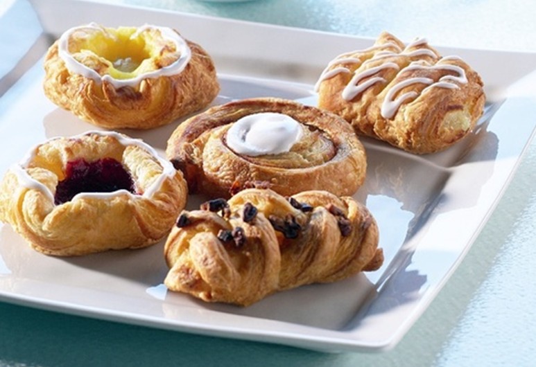 Each tray contains 2 each of Mini Cinnamon Swirl, Mini Raspberry Crown, Mini Maple Pecan Plait, Mini Vanilla Crown, and Mini Apple Coronet