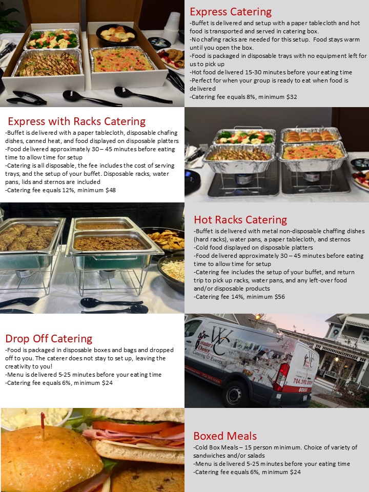 For all Formal catering needs, please contact our customer service at 704-393-0009.